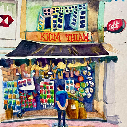Kelvin Lee is known for his evocative paintings that capture the essence of Singapore’s heritage and also the enduring spirit of the community. His work has been features in numerous exhibitions such as detailed depictions of iconic landmarks such as the former National Library, old Raffles Institution, Central Fire Station, Capitol Theatre, and Lim Bo Seng Memorial.