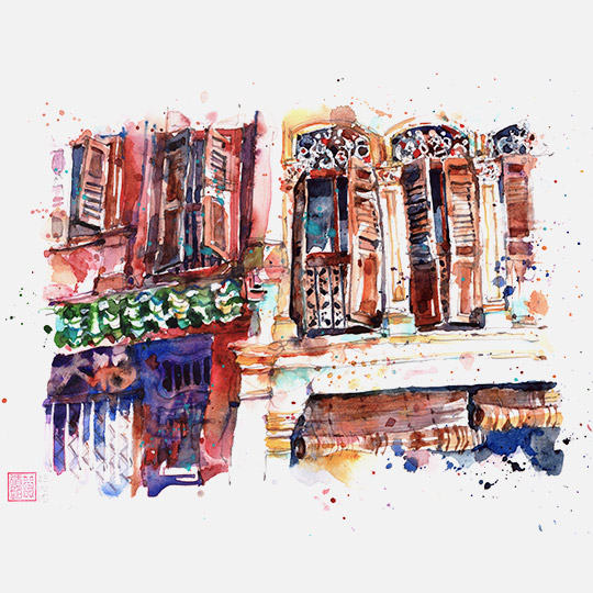Observing the size, shape, and ornamentation of these openings provides valuable insights into how people adapt to their climate and live their lives. In this workshop, we will focus on drawing and painting these openings as strong focal points in our sketches. Let’s go window shopping and explore the stories beyond the walls!