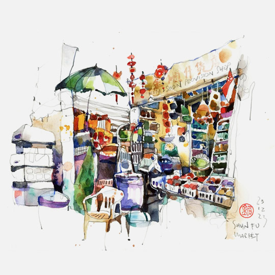 Paul Wang is a passionate art and design educator from Singapore. His art is highly inspired by his training in interior and stage design. His convoluted lines and colorful splashes may look spontaneous but are highly choreographed like a stage performance. Look closely and you will discover stories behind each sketch. He conucts regular play-based art workshops in Singapore and abroad to inspire more people to play, experiment and follow their curiosity. He is also an active urban sketcher and currently serves as their advisory board.