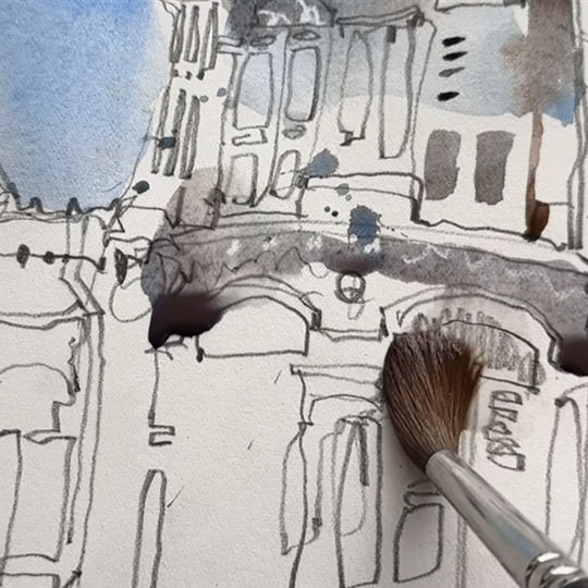 This workshop aims to study and accurately depict windows and doors to convey a sense of time and place. The viewer's attention is often drawn to the ‘eyes’ of a building, making it crucial to represent them effectively on the façade. Openings behave differently under various lighting conditions—direct sunlight, cloudy days, and sunset backlighting.