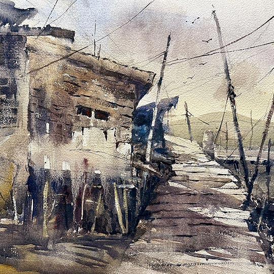 Through focused demonstrations and individual guidance, Brian will guide you to simplify forms, build balanced colour palettes, and handle washes with precision. The session also explores layering, glazing, and compositional strategies to help you express structure and mood with confidence.
