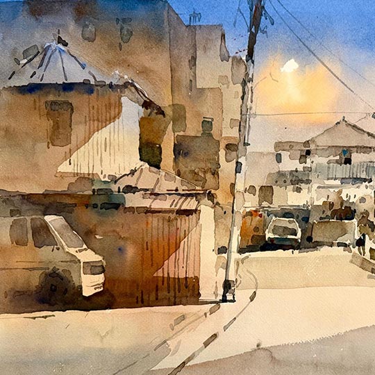 - Watercolor techniques for nighttime scenes: Master essential skills for depicting the unique challenges and beauty of cityscapes bathed in the warm glow of street lamps and neon lights.