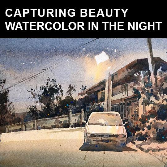 - Watercolor techniques for nighttime scenes: Master essential skills for depicting the unique challenges and beauty of cityscapes bathed in the warm glow of street lamps and neon lights.