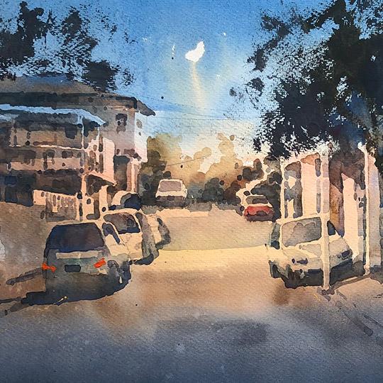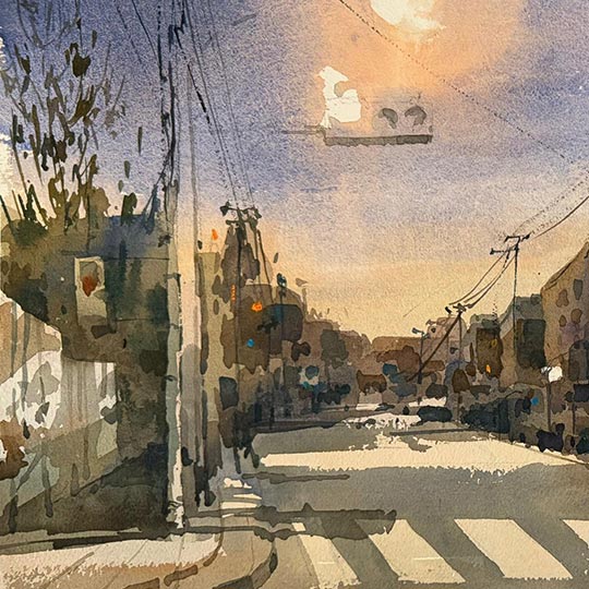 This watercolour theme explores night scenes, where darkness, light, and atmosphere come together to reveal a different character of the city and its surroundings. Streetlights, illuminated windows, reflections on wet ground, and glowing signage become key visual elements, contrasted against deep shadows and muted tones. The theme focuses on capturing mood and emotion through careful control of values, colour temperature, and soft transitions, allowing light to emerge naturally from the dark. Night scenes in watercolour offer a balance of restraint and expression, inviting artists to suggest rather than describe, and to convey a sense of quiet movement, mystery, and life after sundown.