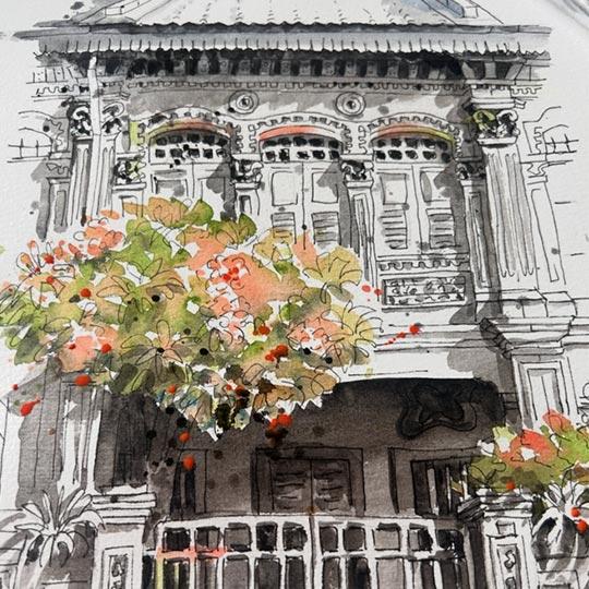 Kanchan Mehendale is a contemporary artist, instructor, and graphic designer based in Singapore, originally from Mumbai, India. Her artistic range spans acrylics, oils, and watercolors, with a particular focus in recent years on capturing the essence of Singapore through her vibrant shophouse paintings.