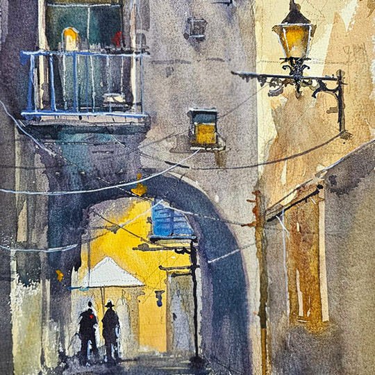 Granulating Watercolor Street Scene Series - Dhoby Dhaut With Pocholo