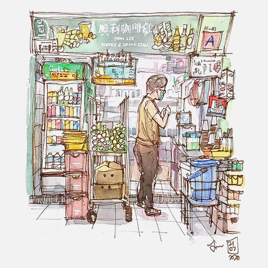 In this session, James will guide participants through observing and sketching the unique architectural charm of hawker stalls, from nostalgic signboards and tiled counters to the bustling atmosphere that defines these spaces. Using watercolor and pen, you’ll learn how to break down complex scenes into approachable steps, capturing both structure and spirit in your accordion notebook.