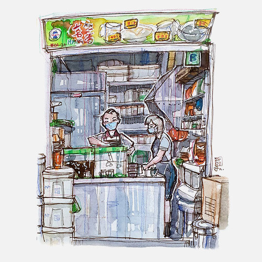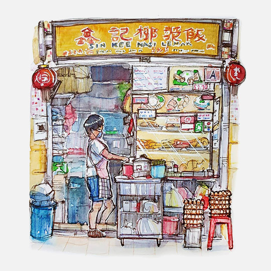 Join James Lim, founder of IG @cafesketcherssg, for Hawker Storefront in Watercolor, a sketch journaling workshop that celebrates the vibrant heart of Singapore’s hawker culture.