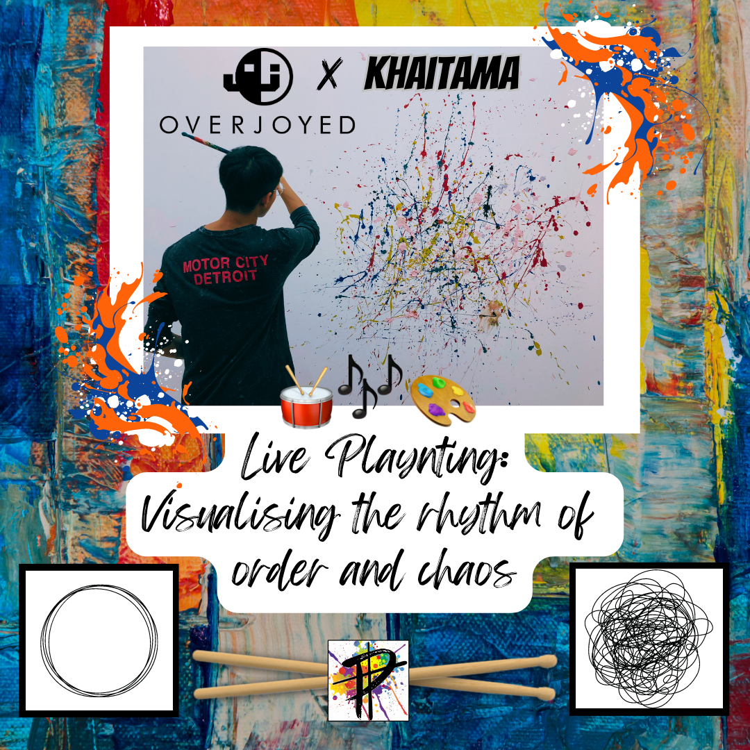 Watch and interact with Khaitama as he paints with drumsticks using materials you can find in the Overjoyed store with sound of music in this live demo!