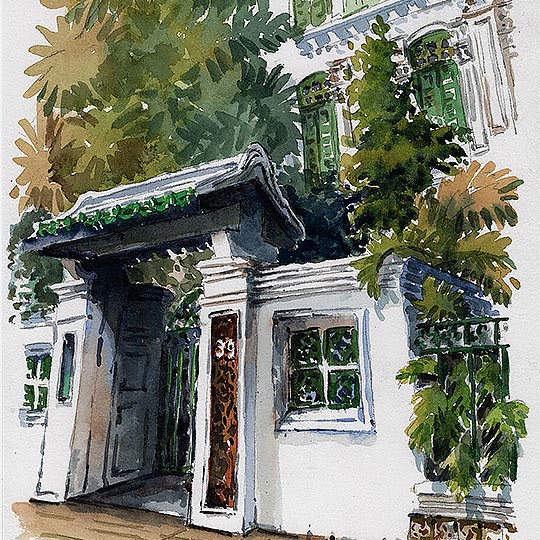 Lush Oriental Shophouse In Watercolor With Kanchan Mehendale