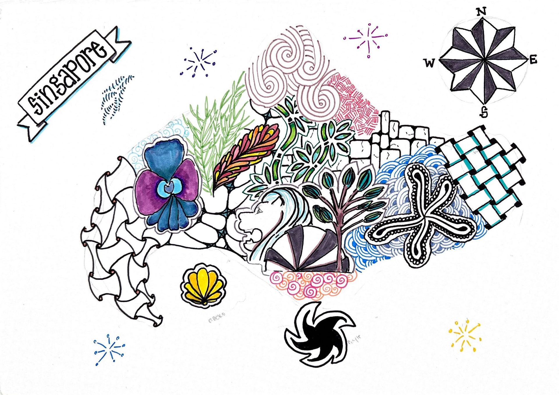 Let's celebrate National Day with mindfulness*. Use Zentangle techniques to create beautiful pieces of Zentangle Inspired Art inspired by our love for all things Singapore!