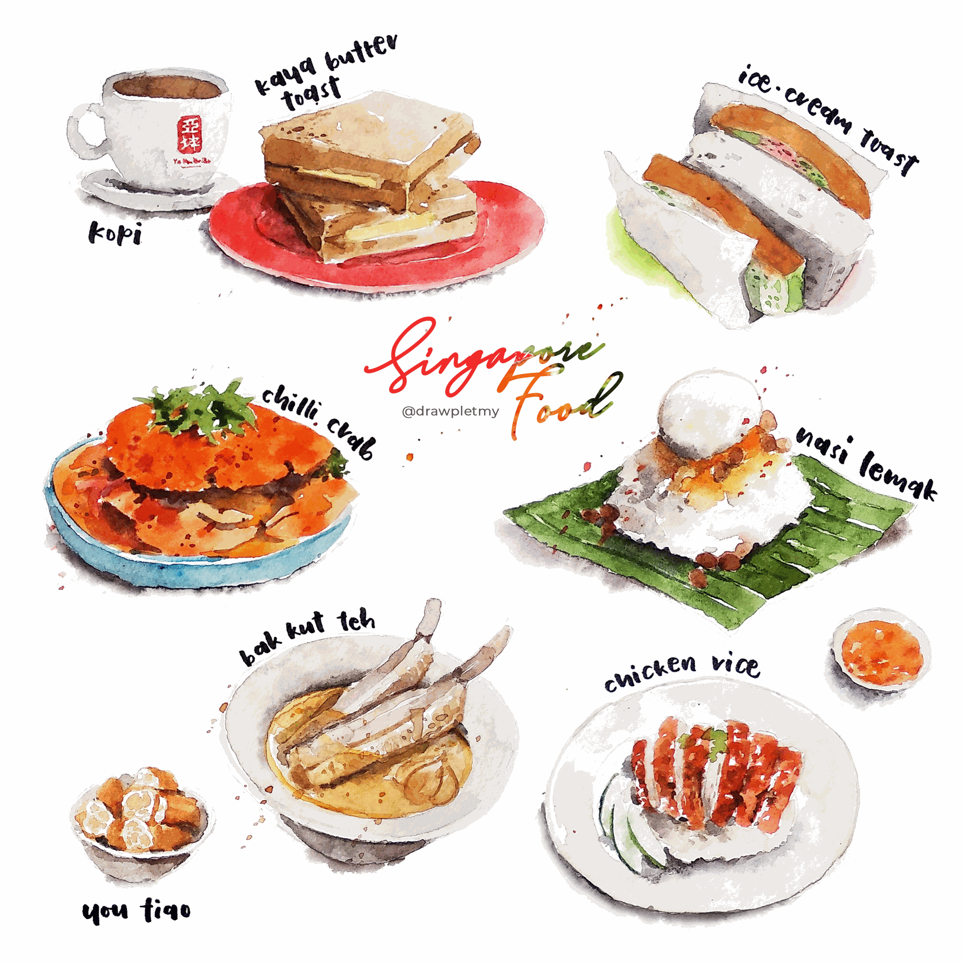 Singapore's National Day SPECIALS! What better way to celebrate than to paint something that we're proud of - our food! This is a simple journaling style watercolor workshop covering some of our iconic Singapore local food! We'll learn about some basic watercolor application techniques (eg. wet-on-wet, layering, color mixing etc); and there will also be a trace-sheet so you don't have to worry if you're a beginner!