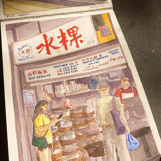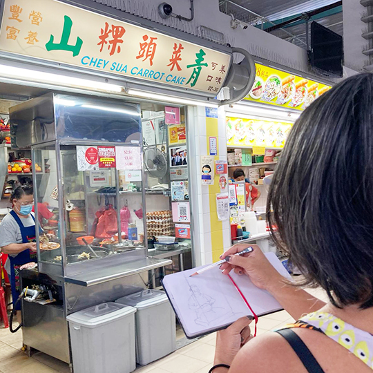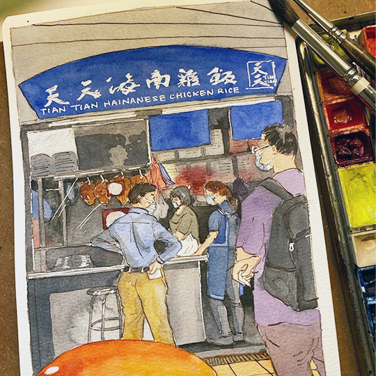 Craving to capture the vibrant energy of Singapore's hawker stalls in watercolors? This beginner-friendly session explores loose yet evocative watercolour techniques for sketching hawker scenes directly. While some prior watercolour knowledge is helpful, all are welcome to learn how to manipulate watercolours and create a captivating suggestion of a bustling hawker stall or provision shop, using a reference photograph as your guide.