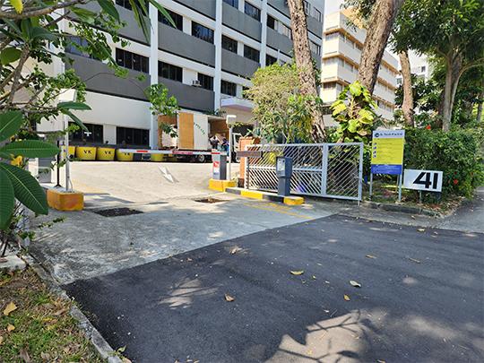 Enter the gate with the "41" sign.